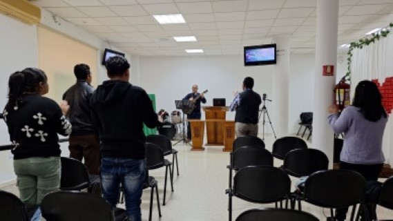 Jesus está salvando vidas aqui na Espanha, e a igreja segue crescendo. Porém, como é formada por 2/3 de imigrantes, é muito comum que, às vezes, não possam vir frequentemente aos cultos, pois às vezes conseguem trabalhos com horários incompatíveis com os horários de culto, o que faz com que muitos esfriem na fé e terminem sucumbindo às lutas e provações.
