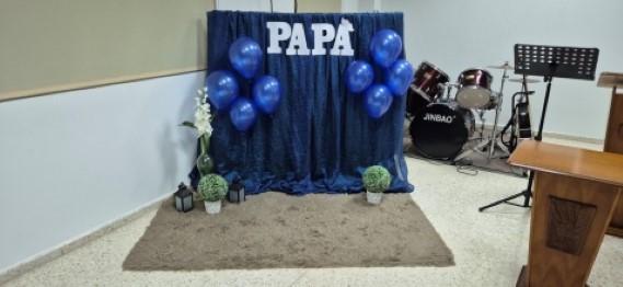 Preparativos para o culto em comemoração ao Dia dos Pais.