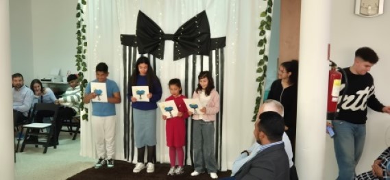 Culto com a participação dos jovens, onde apresentaram uma peça com o tema: “Uma viagem ao céu”. Também estão dando os primeiros passos no grupo de gestos, e cada um deles teve a oportunidade de ler um versículo e dar uma palavra para a igreja. São esses pequenos passos que me fazem adorar a Deus, sabendo que o trabalho está crescendo e que uma nova geração está chegando.