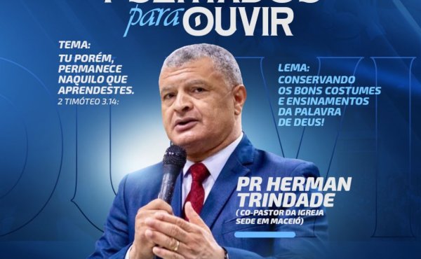 O seminário terá como palestrante o pastor Hermann Trindade, co-pastor da Igreja Sede em Maceió, que ministrará com base no tema “Tu, porém, permanece naquilo que aprendeste” (2 Timóteo 3.14). O lema escolhido para a ocasião será “Conservando os bons costumes e ensinamentos da Palavra de Deus”.